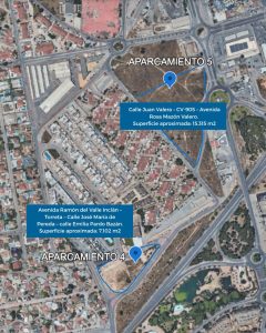 -APARCAMIENTO 4: Avenida Ramón del Valle Inclán – Torreta – Calle José María de Pereda – calle Emilia Pardo Bazán. Superficie aproximada: 7.102 m2.