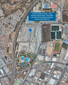 -APARCAMIENTO 6: Avenida Delfina Viudes – n-332 (Parque Antonio Soria – Mercadillo semanal de Torrevieja). Superficie aproximada: 92.397 m2.