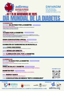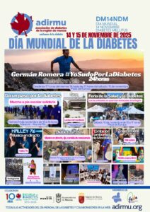 La Asociación de Diabetes de la Región de Murcia (ADIRMU) convoca a la sociedad murciana a unirse a la celebración del Día Mundial de la Diabetes (DMD), que tendrá lugar mañana, viernes 14 de noviembre y el sábado 15, con un amplio programa de actividades en la Plaza de Europa de Murcia.