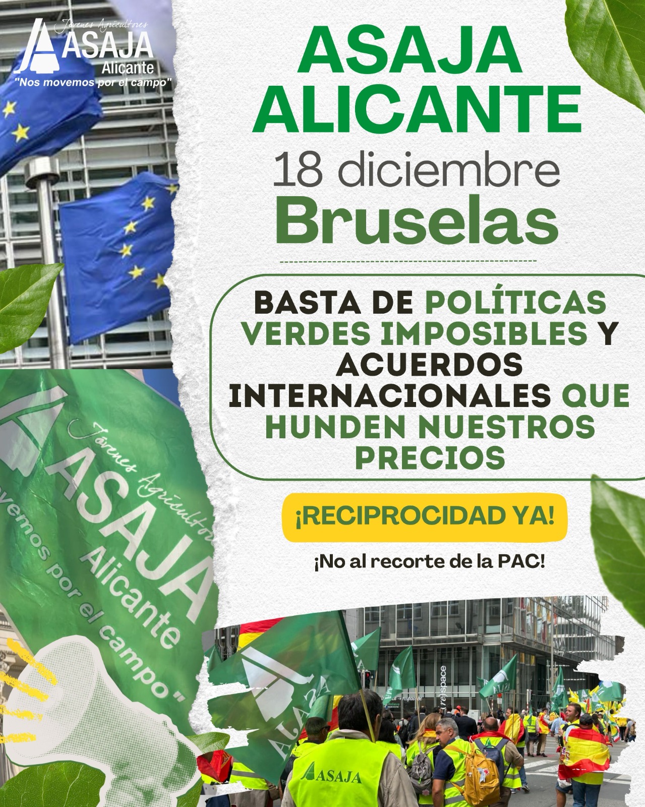 ASAJA Alicante participará en la gran movilización del 18 de diciembre en Bruselas