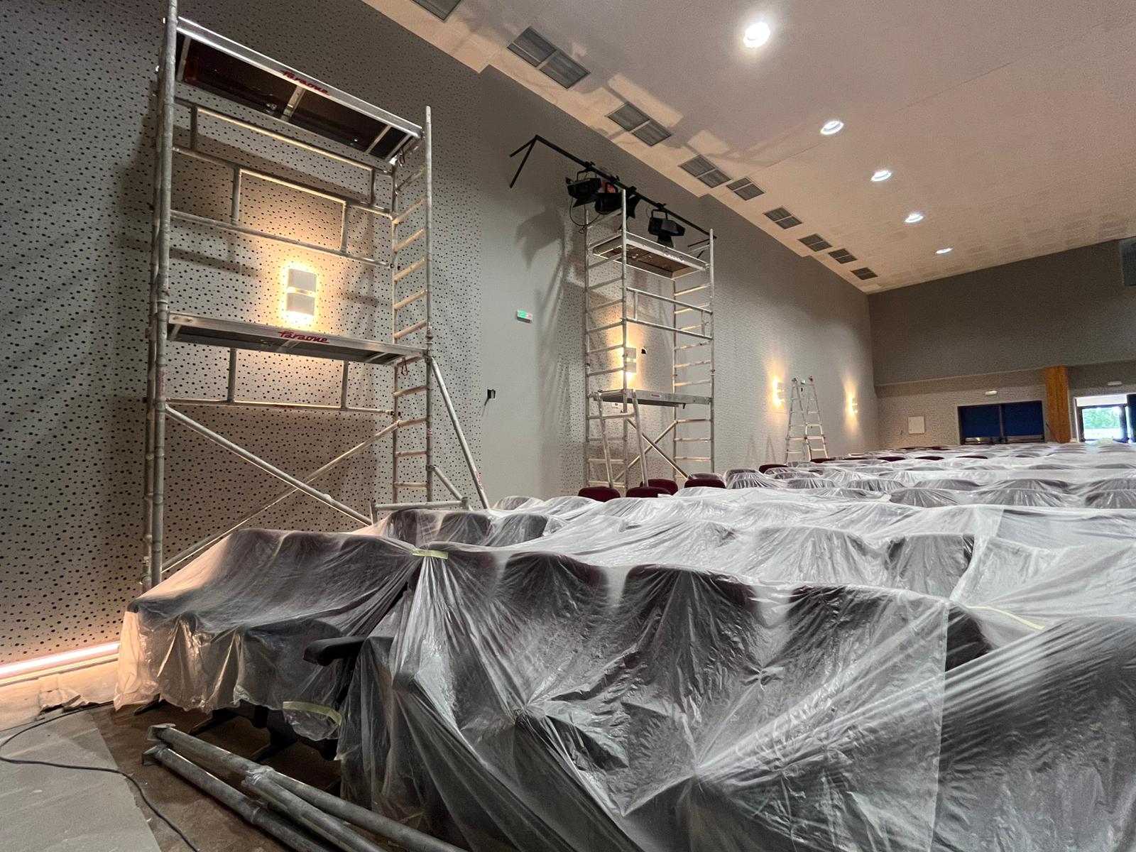 En esta primera fase que está finalizando, las paredes del recinto se han remodelado de forma integral, con esta intervención, no solo se han eliminado desperfectos y humedades, sino que el auditorio presenta ahora una imagen más moderna y acorde con los tiempos, ofreciendo a los usuarios y espectadores una experiencia visual renovada.