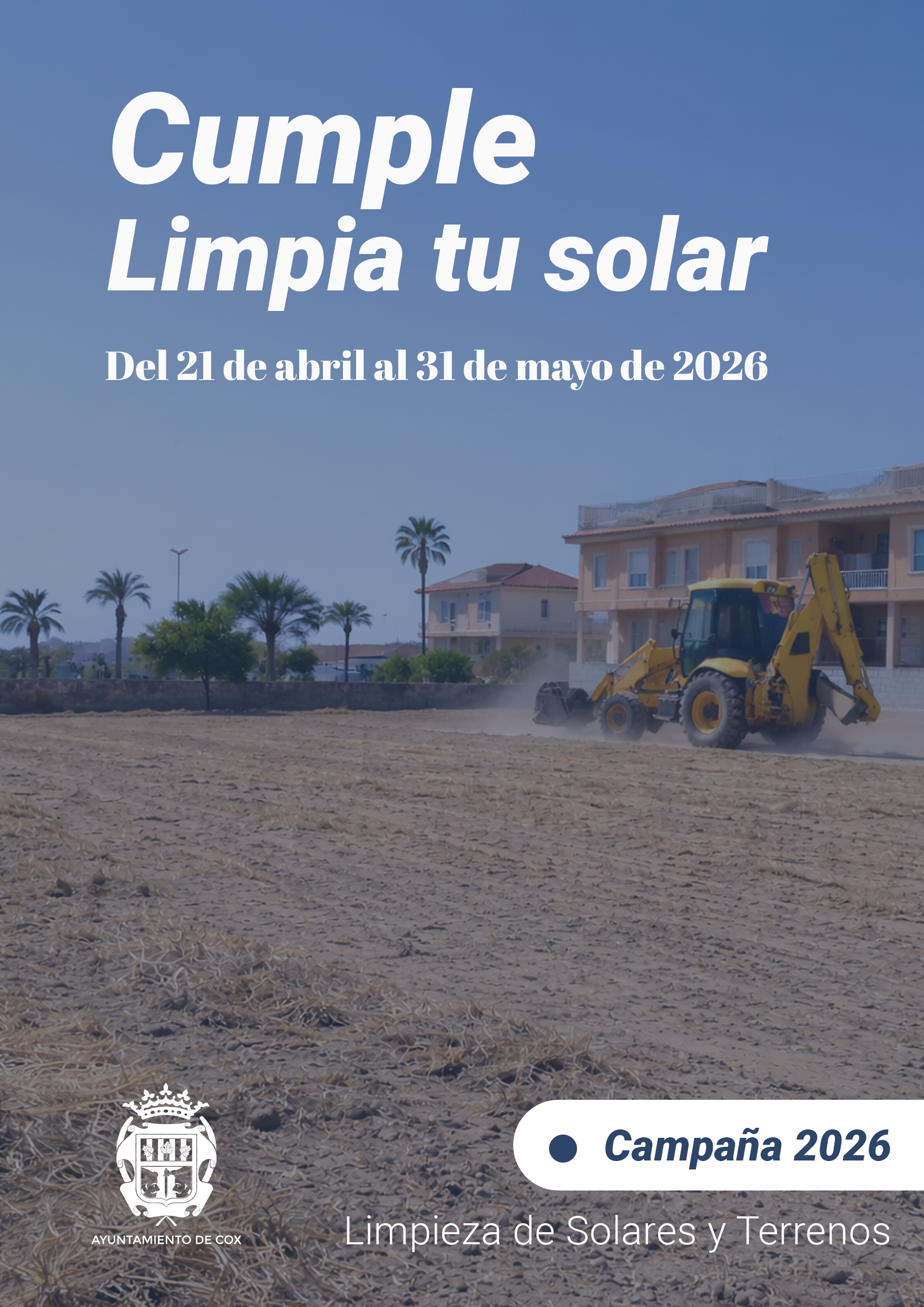 El Ayuntamiento de Cox, a través de la concejalía de Medioambiente, ha presentado la nueva Campaña de Limpieza de Solares y Terrenos 2026, una iniciativa dirigida a los propietarios de parcelas urbanas y terrenos del municipio con el objetivo de mejorar la seguridad, la salubridad y la imagen urbana de la localidad.