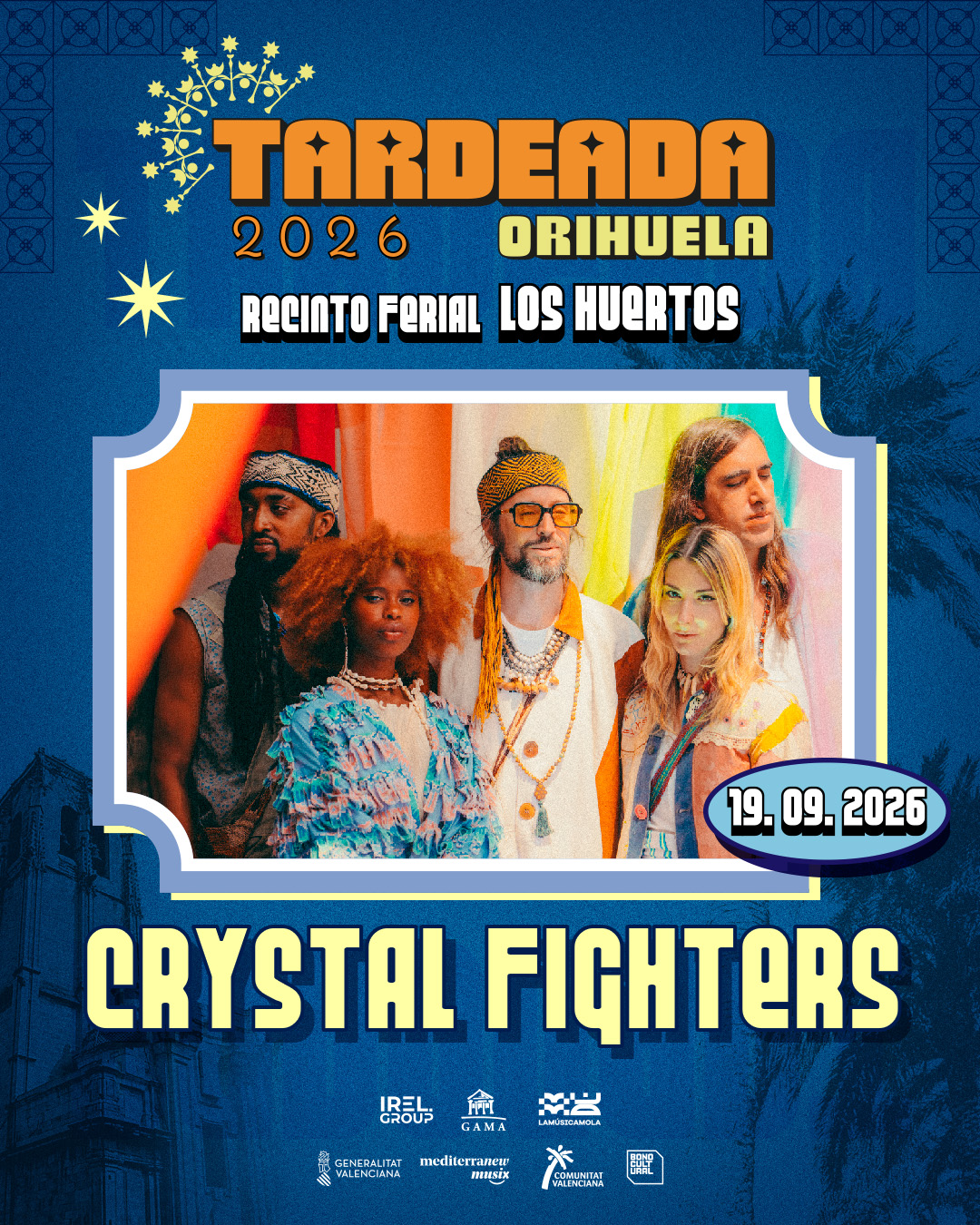 Crystal Fighters llevan más de una década conquistando los grandes festivales del mundo — Glastonbury, Coachella, Primavera Sound — con un sonido que funde electrónica, indie y música tradicional vasca. Su directo es pura energía, y Orihuela lo comprobará en primera persona compartiendo cartel con Funambulista y Zahara Rave.