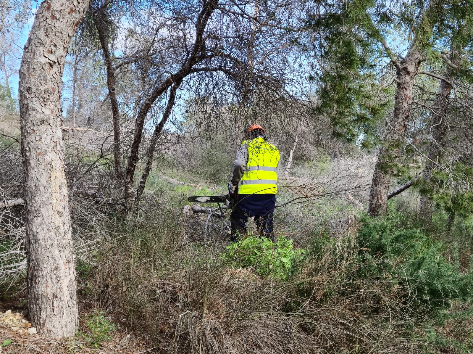 El Ayuntamiento de Murcia está actuando con medidas preventivas para frenar y revertir los efectos de la sequía en el parque municipal de Montepinar, en la pedanía de El Esparragal, dentro de la estrategia municipal de protección ambiental y prevención de incendios forestales.