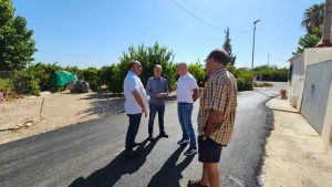 El alcalde de Orihuela, Pepe Vegara, junto con el concejal de Infraestructuras, Víctor Valverde, y el alcalde pedáneo de La Aparecida, Clemente Martínez Pardo, ha visitado las obras de asfaltado en el diseminado del Arenal, en Rincón de los Cobos. Esta actuación, enmarcada en el plan municipal de asfaltado, ha supuesto una inversión de 80.000 euros para mejorar 9.000 m² de superficie en varias calles de La Aparecida.