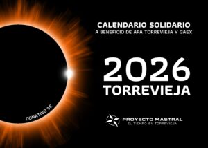 Además, como cada año por estas fechas, el equipo de Proyecto Mastral ya tiene a la venta su calendario solidario, cuya recaudación va íntegramente destinada a AFA Torrevieja, la Asociación de Familiares y Amigos de enfermos de Alzheimer, y a GAEX, el Grupo de Amigos de exadictos. Este calendario incluye 12 fotografías cedidas por sus autores e información climática y astronómica.