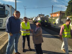 El director general de Carreteras de la Región de Murcia, Francisco Carrillo, junto con los alcaldes de Abanilla, José Antonio Blasco, y Santomera, Víctor Martínez, han visitado las obras que consisten en el reciclado del firme existente con una emulsión bituminosa aplicada a temperatura ambiente. De esta manera, se trabaja de forma más sostenible al aprovechar el propio material de la carretera, logrando un refuerzo estructural sin necesidad de recrecer la vía.