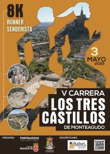 La V Carrera Popular Tres Castillos Monteagudo regresa al calendario en el 1200 Aniversario de la Ciudad, el sábado 3 de mayo, con el objeto de que sea un evento para la práctica deportiva en un entorno privilegiado, y en el que los asistentes realizarán una ruta por los castillos que conforman el sitio histórico de Monteagudo-Cabezo de Torres.