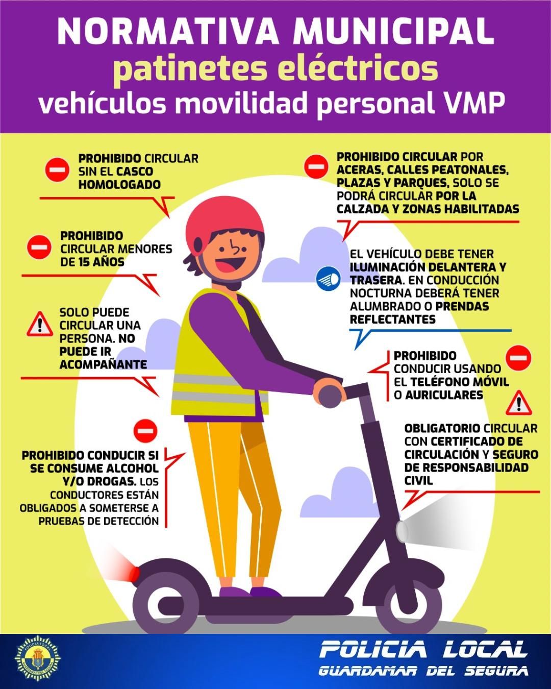 La Policía Local de Guardamar del Segura ha informado de la entrada en vigor de la nueva normativa municipal de VMP