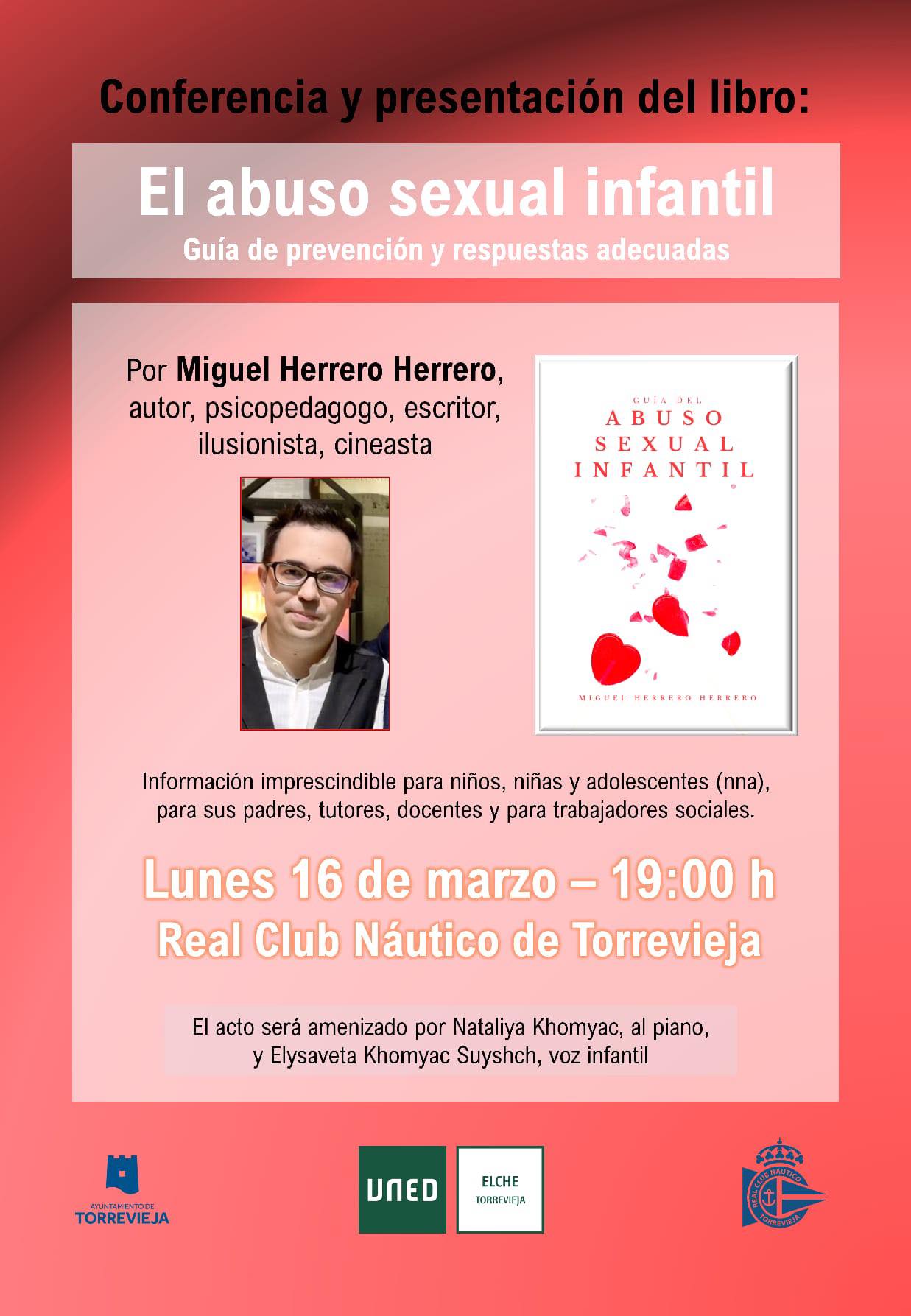 El lunes, 16 de marzo, a las 19:00 horas, en el Real Club Náutico de Torrevieja se presenta un libro imprescindible. Se trata de El abuso sexual infantil, que tiene por subtítulo: Guía de prevención y respuestas adecuadas.