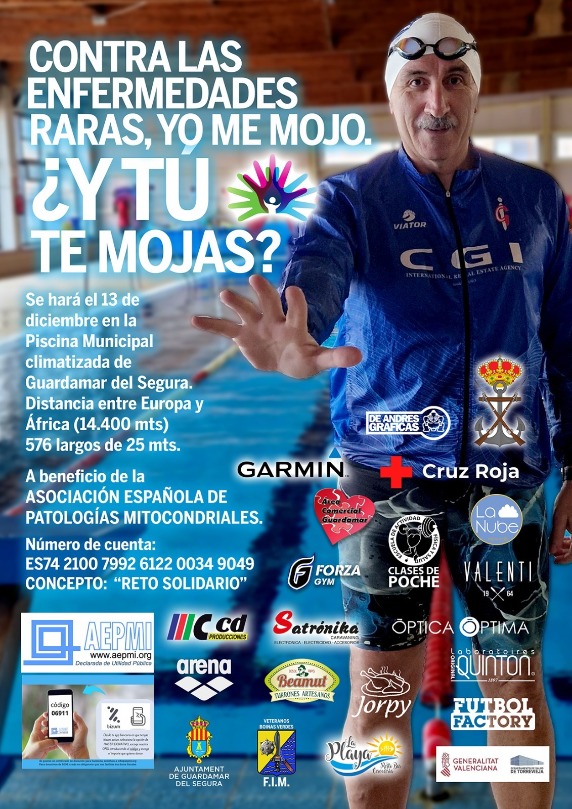 Nadar 14.400 en la Piscina Climatizada municipal de Guardamar para recaudar fondos y dar visibilidad a las personas con enfermedades raras