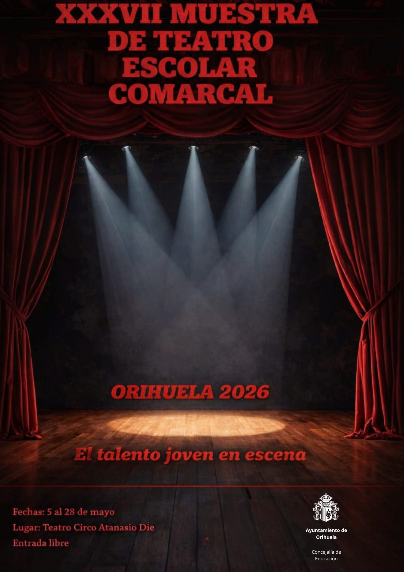 La muestra se celebrará en el Teatro Circo Atanasio Díe del 5 al 28 de mayo, con un total de 27 representaciones teatrales a cargo de nueve centros educativos de Orihuela, Torrevieja, Callosa de Segura y pedanías del municipio.