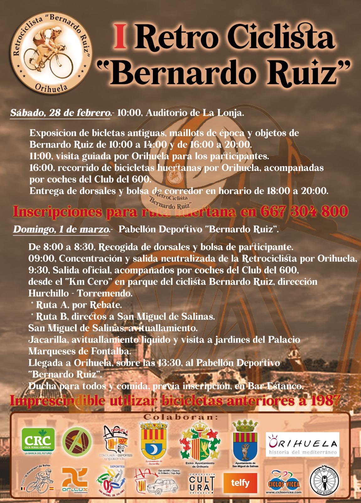 Orihuela se prepara para vivir un momento muy especial: la I Retro Ciclista “Bernardo Ruiz”, un evento único que rinde homenaje a uno de los grandes nombres del ciclismo español y, sobre todo, a un oriolano que llevó el nombre de su tierra por todo el mundo.