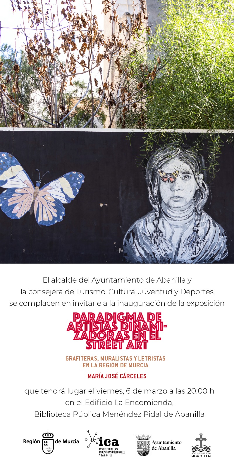 Este viernes, 6 de marzo, a las 20:00 horas, tendrá lugar la inauguración de la exposición ‘Paradigmas de Artistas Dinamizadoras del Street Art’ con Grafiteras, Muralistas y Letristas de la Región de Murcia que ha recogido en su obra la artista murciana María José Cárceles en la Biblioteca Municipal Menéndez Pidal.