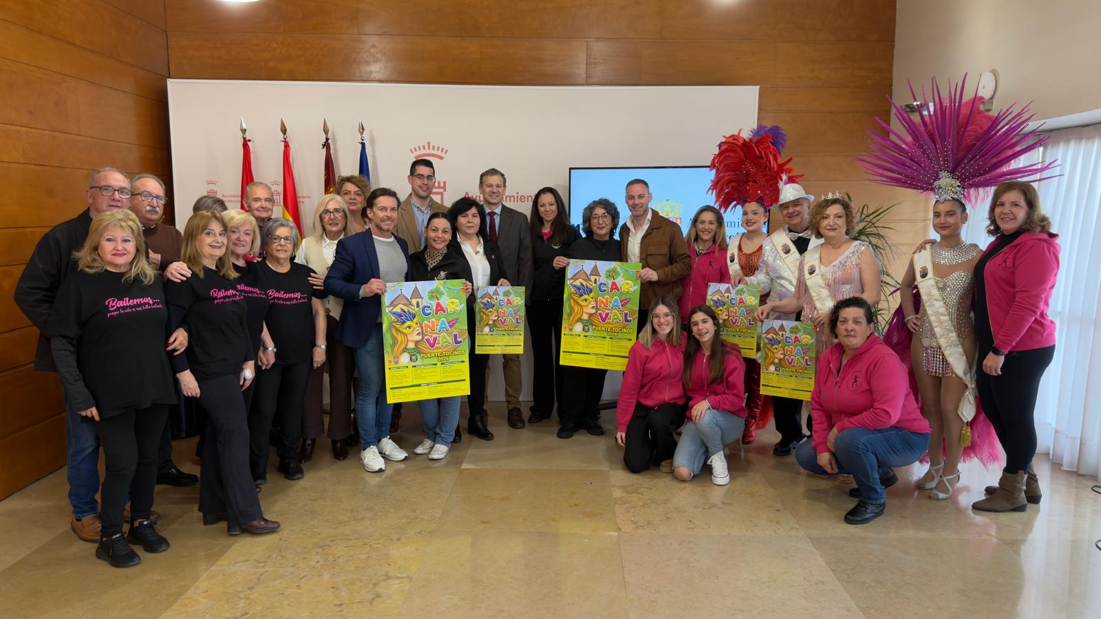 Puente Tocinos acoge un año más una programación amplia y variada con motivo de los Carnavales. El concejal de Pedanías y Vertebración Territorial del Ayuntamiento de Murcia, Marco Antonio Fernández, junto con representantes de la Junta Municipal de Puente Tocinos y de la Asociación de Carnaval han presentado el programa de estas fiestas que tendrán lugar los días sábado 7 y domingo 8 de febrero, y viernes 13 y sábado 14 febrero.