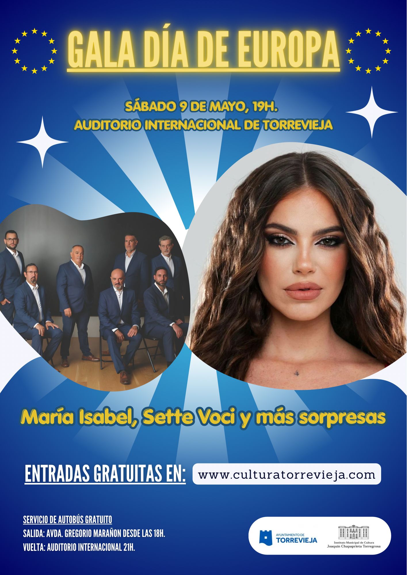La gala contará con la participación de artistas locales, destacando el grupo Sette Voci, que ofrecerá un repertorio especial con canciones emblemáticas del Festival de Eurovisión, en un espectáculo musical pensado para todos los públicos.