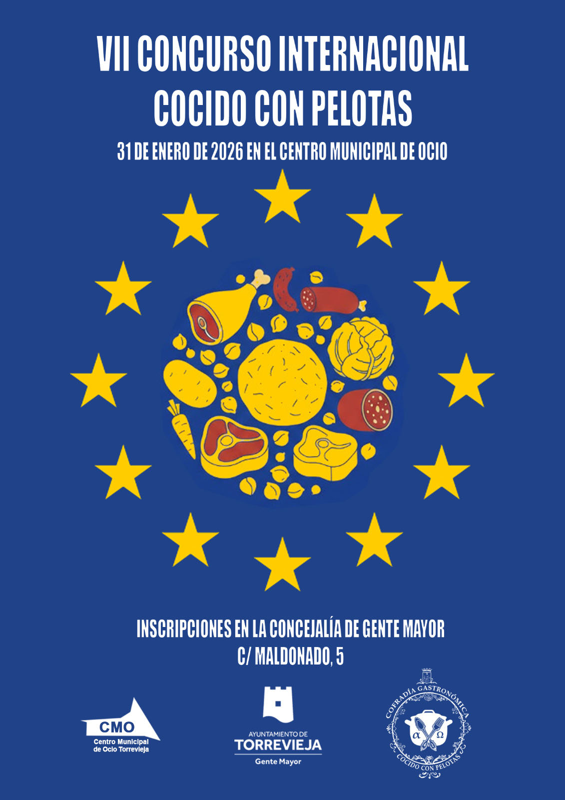 La concejalía de Gente Mayor de Torrevieja, junto a la Cofradía Gastronómica del Cocido con Pelotas, organiza la séptima edición del Concurso Internacional del Cocido, que se celebrará el sábado 31 de enero en el Centro Municipal de Ocio. El certamen contará con la participación de alrededor de veinte equipos y cuatro modalidades: Cocido Internacional, Cocido Regional Español, Cocido con Pelotas Tradicional y Cocido con Pelotas auténticamente torrevejense.